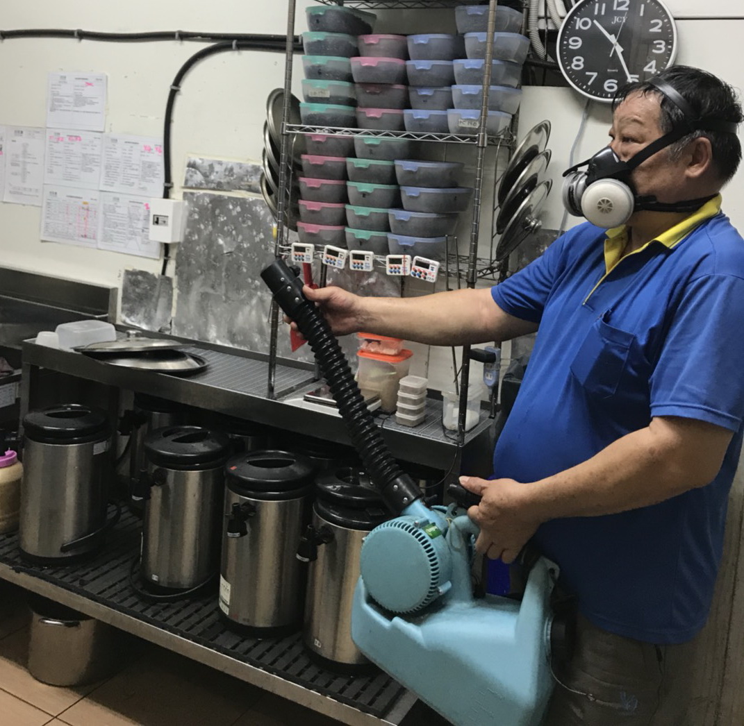 空間噴灑是用超低容量冷煙水霧機,水霧煙式讓水霧煙把殺蟲劑有效成分帶出擴散到整個空間縫隙與角落非常適合在密閉而且死角多的室內空間。有效防治蚊.蠅等飛行性昆蟲,並快速展現出擊殺.驅出的效果。
